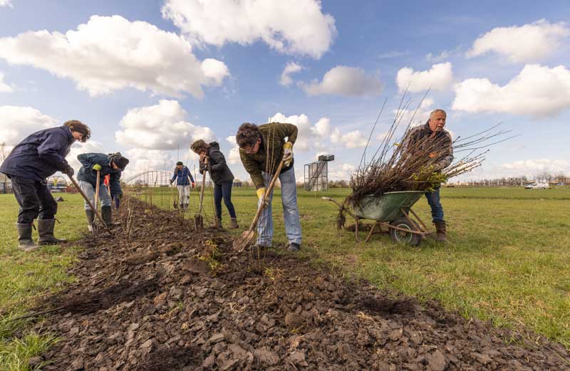 We werken niet altijd met een planning, omdat we vaak afhankelijk zijn van de planten die op dat moment de grond in moeten. Het is fijn als je je eigen spade en handschoenen me kunt nemen.